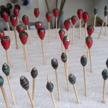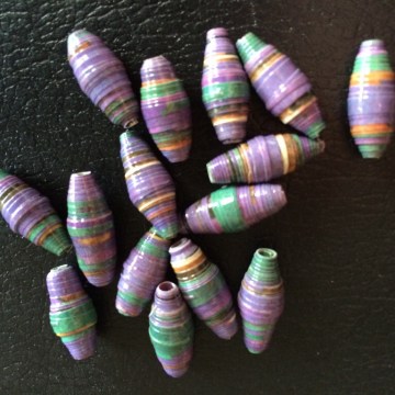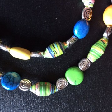Jewelry made from handmade paper beads from discarded library books and other jewelry designs